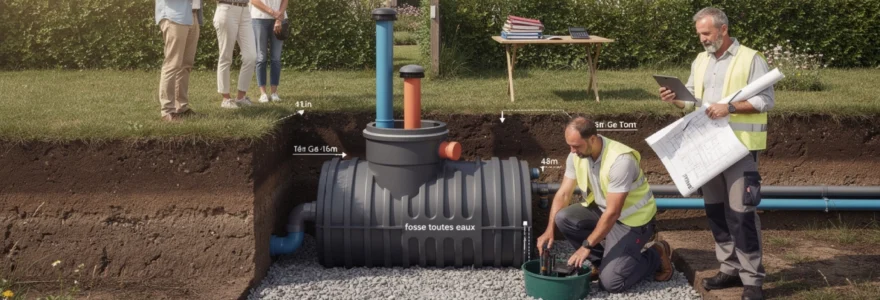 surcharges hydrauliques, des débordements prématurés et, à terme, une usure accélérée de l’ensemble du dispositif. En pratique, il est souvent pertinent de majorer légèrement le volume réglementaire (par exemple viser 5 à 6 m³ pour 9 EH) afin d’anticiper une augmentation d’occupation (naissance, location saisonnière, télétravail) et d’espacer les vidanges. Cette marge de sécurité représente un faible surcoût initial au regard des économies générées sur la durée de vie de la fosse septique commune.