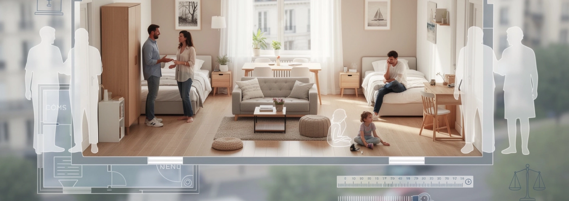 Une autre configuration, souvent évoquée, consiste pour le parent à dormir dans le salon, laissant une chambre à chaque enfant. Ce choix peut être tolérable à court terme, par exemple en cas de séparation récente ou d’attente d’un relogement, mais il n’offre pas les meilleures conditions d’intimité pour l’adulte. D’un point de vue réglementaire, rien n’interdit à une famille monoparentale de vivre à trois dans un F3, voire à quatre si la surface globale s’y prête. La vraie question à se poser est plutôt : cette organisation est-elle viable et confortable sur plusieurs années ?